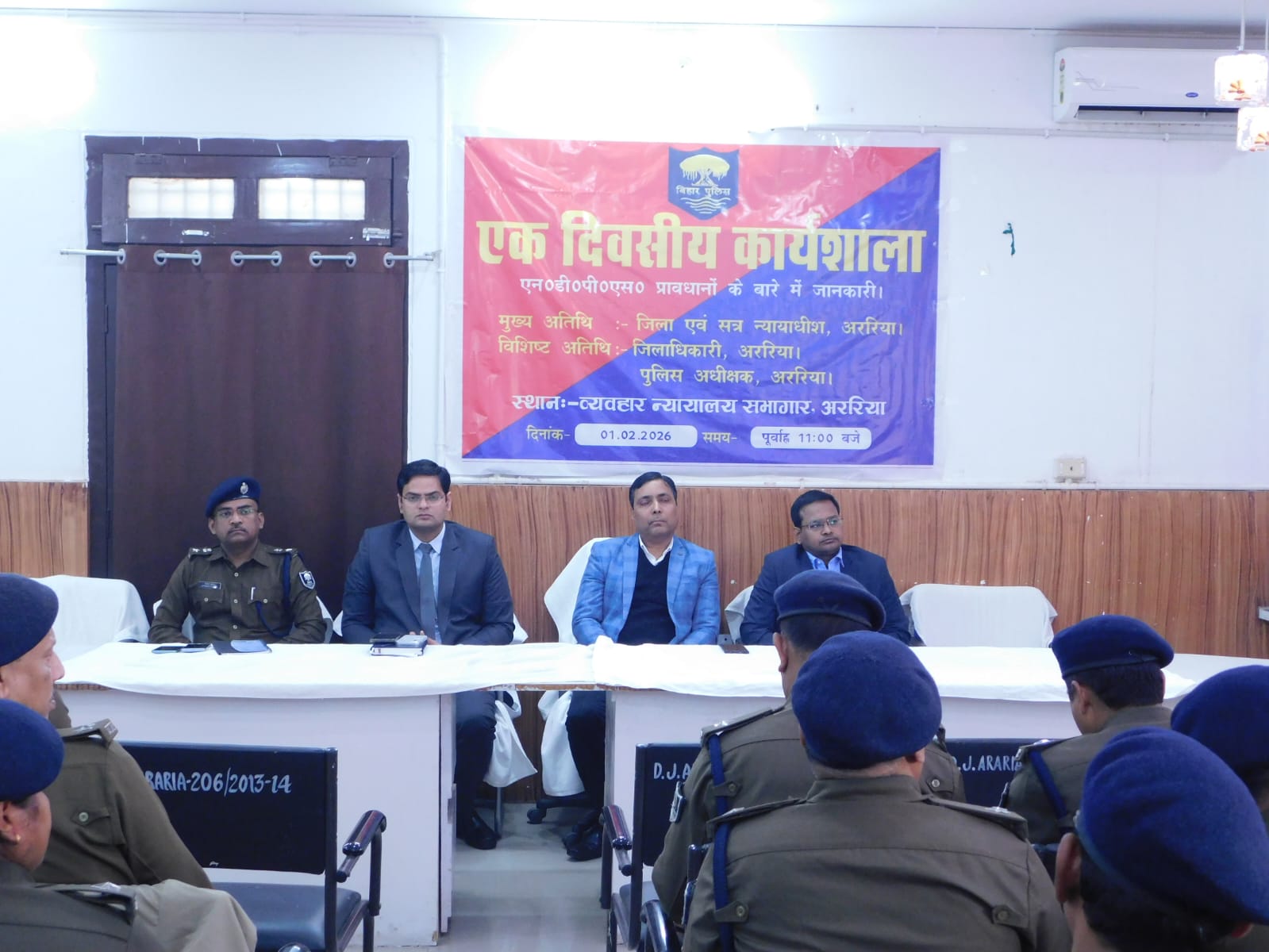 मादक पदार्थों के अवैध व्यापार एवं नशा उन्मूलन के विरुद्ध प्रभावी कार्रवाई सुनिश्चित करने के उद्देश्य से रविवार को अररिया में एन०डी०पी०एस० (नारकोटिक ड्रग्स एंड साइकोट्रॉपिक सब्सटेंस) अधिनियम के प्रावधानों को लेकर व्यवहार न्यायालय सभागार अररिया में एक दिवसीय कार्यशाला का आयोजन किया गया।